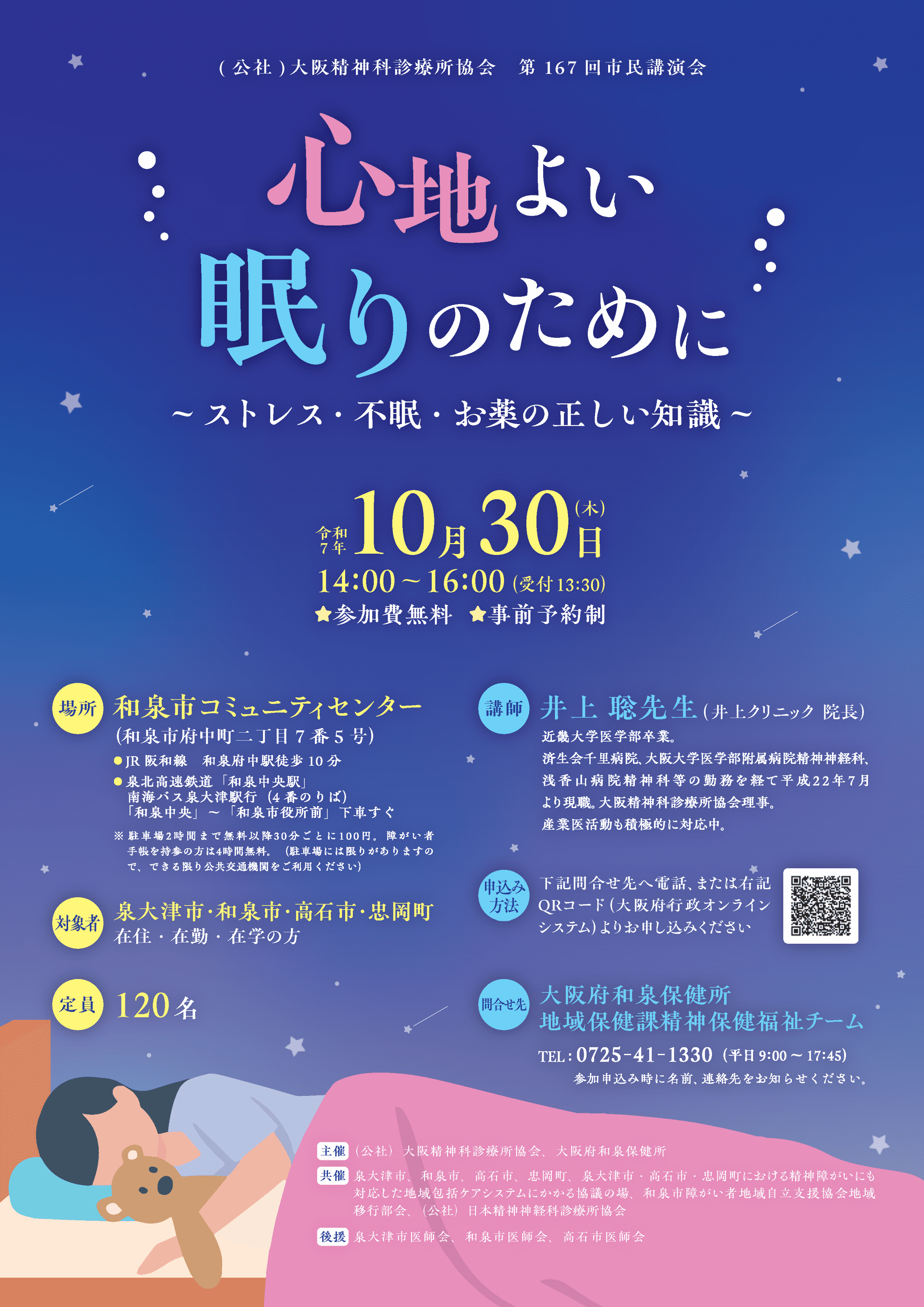 第167回大精診市民講演会「心地よい眠りのために~ストレス・不眠・お薬の正しい知識~」の開催についてのご案内